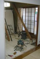 リビングと隣接した和室の床をフラットにし、境の建具をリビング側と和室側の面材の違うものに交換しました。押入をクローゼットにし、書斎の建具もガラス入りに交換しました。